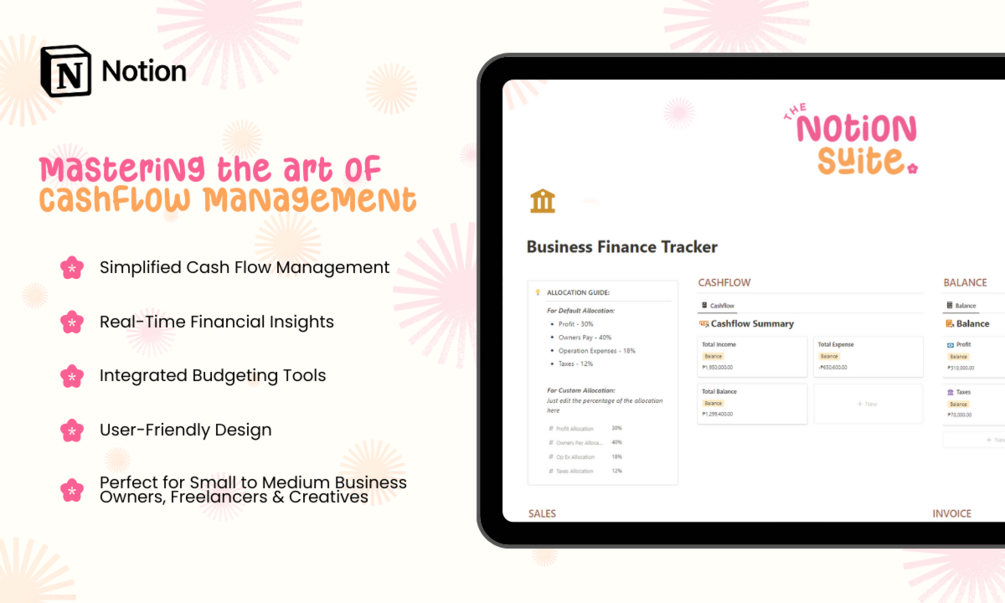 Unlock the full potential of your cash flow with our Notion Business Finance Tracker, specifically designed to transform the way small to medium business owners, freelancers, and creatives manage their finances.